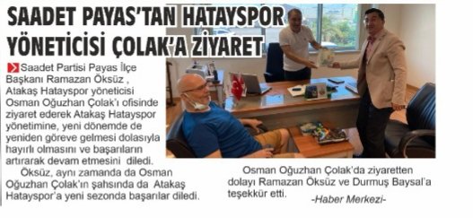 YEREL YAZISAL BASINDA ÇIKAN PAYAS SAADET PARTİMİZİN HABERLERİ :