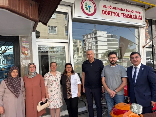 28. Bölge Hatay Eczacı Odası Dörtyol Temsilciliği’nde gerçekleşen ziyarette Başkan Fatih Mancak, Yardımcı Güler Narin, üyeler Deniz Kıymacı ve Yunus Doğan heyeti karşıladı.